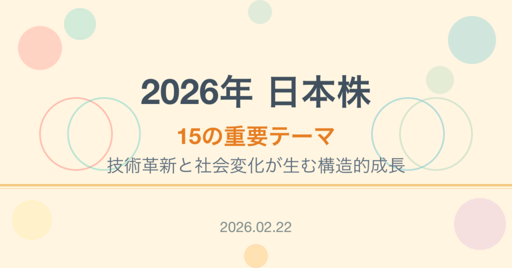 テーマを知ることはスタートラインです。そこから、業績・財務・バリュエーションとの総合判断へと進む、自分なりの投資哲学の構築が、2026年の市場では特に重要な武器になるでしょう。