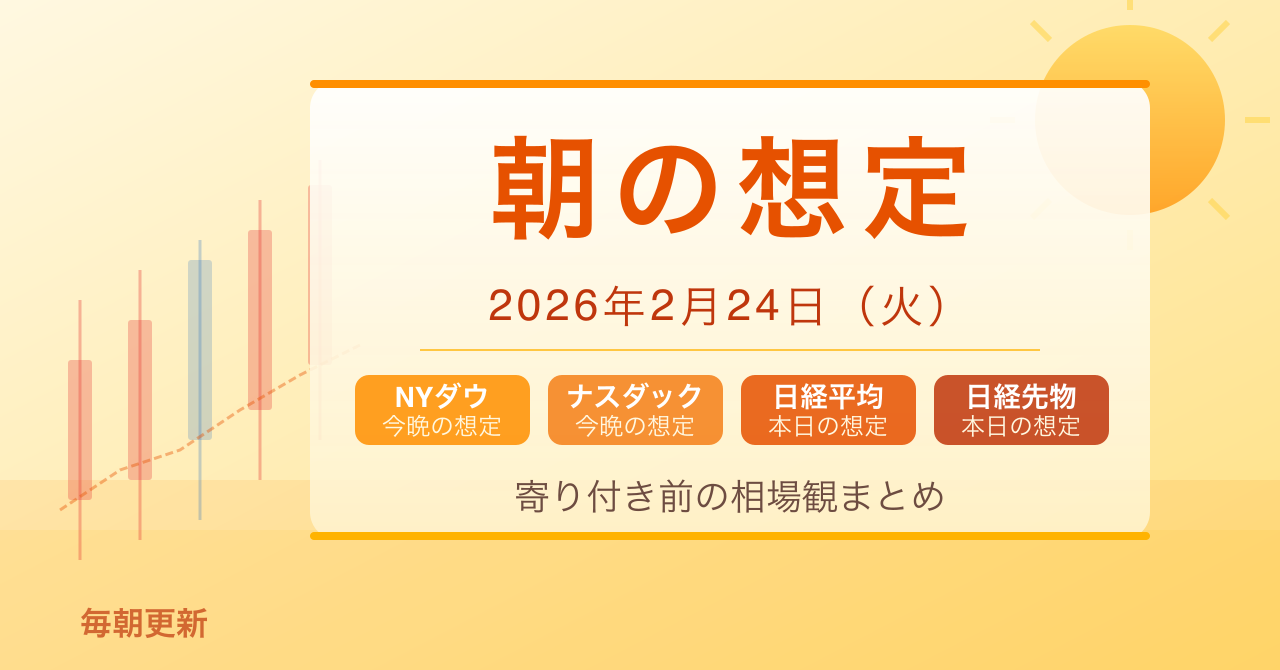 直近のNY市場(2/20金曜・現地終値)は、ダウ+0.47%・ナスダック+0.90%と揃って反発した。コアPCEがインフレ上振れを示し波乱含みで始まったものの、最高裁によるトランプ関税措置無効判断を好感した買いが入り、引けにかけて水準を切り上げた。一方で、トランプ大統領が「全世界向け10%一律追加関税」を表明したことで上値は重く、強気一色とは言い難い内容でもあった。本日(2/24)はこのNY終値を引き継いだ形で日本市場が再開する。
