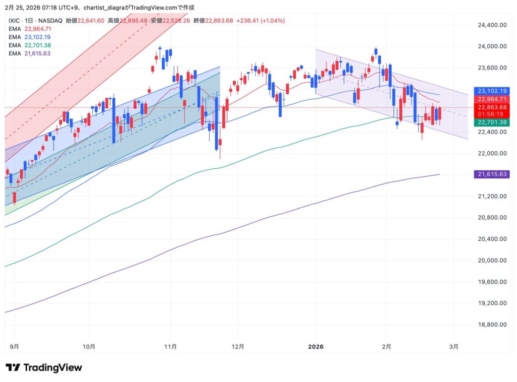 前日(2月24日・現地終値)は 22,864(+236.41・+1.04%)で引けた。