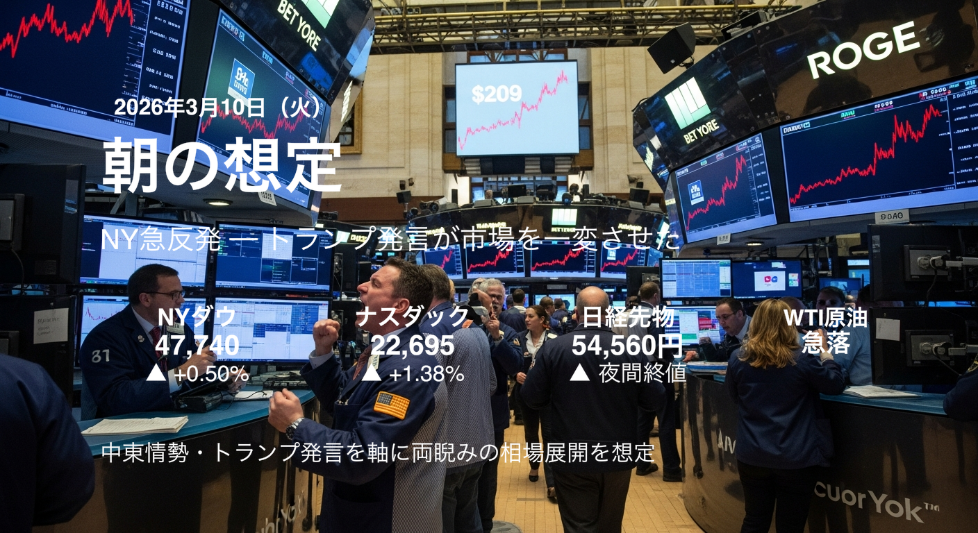 本日の相場は、トランプ大統領の「イラン戦争ほぼ終結」発言をどこまで信頼するかが最大の分岐点となる。
